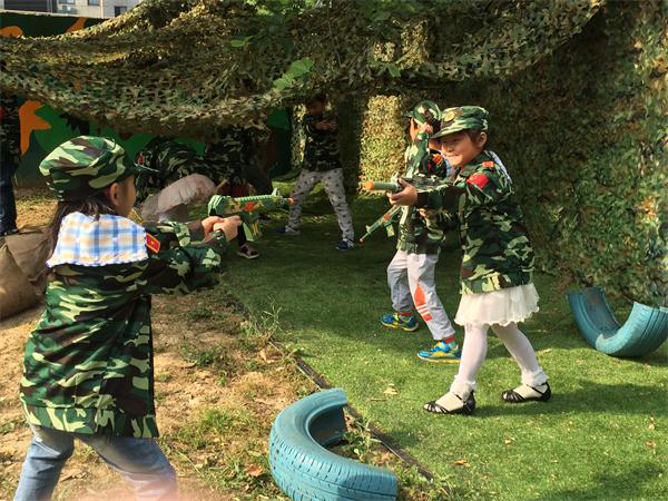 户外野战营游戏活动给孩子们带来了全新的新鲜感和趣味感,也让孩子们感受到团队合作的快乐,更重要的是让孩子们在这些自主游戏的组织中增强了交流、组织等能力。