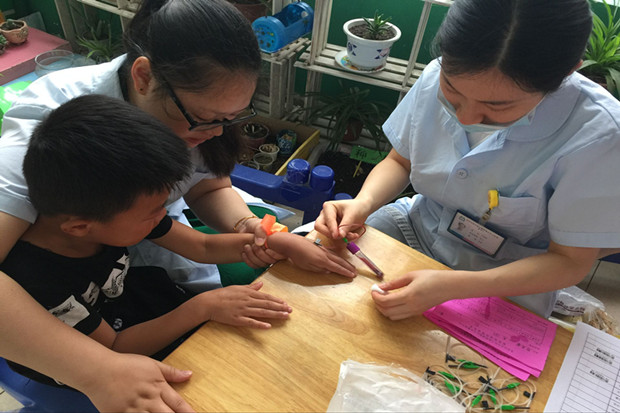 本次体检的项目有血色素检验、内科检查等。体检过程中,医生们在保健蔡老师和班级老师的配合下,认真、细致地给每个孩子做了全面检查。医生们分工明确,态度温和,老师们用鼓励、表扬的方式给予孩子们心理疏导,积极营造轻松的检查氛围,整个体检过程井然有序。医生将检查的结果详细地填写在幼儿健康体检记录表上,并及时把情况反馈给家长,帮助家长全面掌握幼儿的成长情况,进一步做好卫生保健工作。