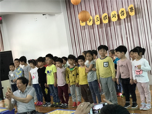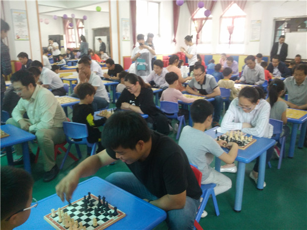 5月24日下午,在幼儿园的多媒体教室里,三十多位爱好棋类活动的家长齐聚一起,与爱好棋类的幼儿展开了一场激烈的棋类比赛。共有62名幼儿、家长参加了本次象棋、围棋、国际象棋三个项目的比赛。大多数幼儿是首次参加如此盛大的比赛,但小棋手们个个沉着应战,认真思考,聚精会神地下好每一步棋,他们有的全神贯注下棋,有的在轻声地和祖辈讨论棋艺的见解,“当头炮、马来跳”等等专业术语从孩子们口中一一蹦出。小选手们虽然年纪很小,可是他们沉着稳重、步步为营,脸上始终洋溢着自信的微笑。