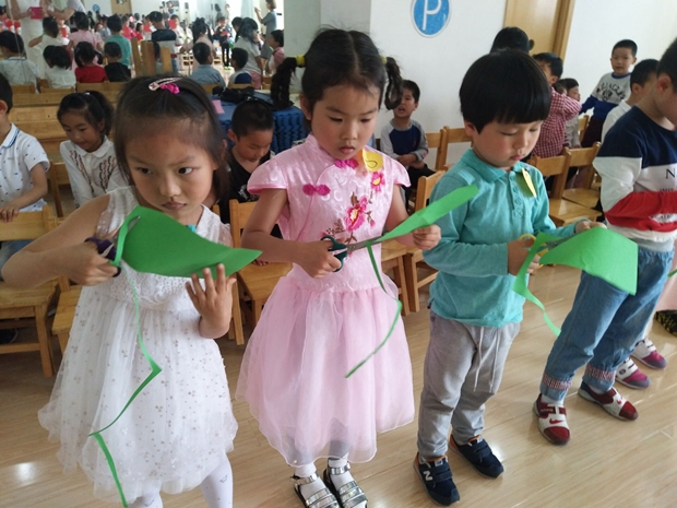 在比赛前,每位幼儿每天都在教室里进行着练习,还时不时拿着剪好的纸条跟好朋友比比谁的最长,以便自己尽快调整将纸剪长的方法,最后每个班挑选十位能力最强的幼儿参加级组的总决赛。
