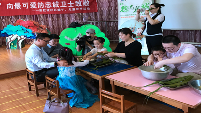 对从未包过粽子的小朋友们来说,学习包粽子虽然很有挑战性,但却充满了乐趣。更重要的是,还能在端午节来临之前将粽子送给尊敬的消防员叔叔、警察叔叔们品偿,心里别提有多开心呢,整个学习过程更别具意义,家长和小朋友们从手忙脚乱到配合默契。孩子们不停地帮妈妈、奶奶递粽叶、装糯米,拿绳子,忙的不亦乐乎,电视台的记者叔叔和阿姨,也来到了现场,在大家的忙碌中很快粽子包好了。