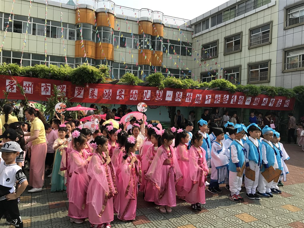 本次活动丰富多彩,孩子们首先知道了端午节的来历,也了解了端午节的风俗。幼儿园让每个班的孩子在操场上以班级为方阵进行展示,小朋友们穿了各种各样的民族服装,在红地毯上尽情展示。同时,老师还用艾叶沾取木兰汤在小朋友们身上进行洒水,这也是端午习俗中的,可以用来避邪。老师还帮小朋友们在额头点红,这也是用来避邪。回到教室里,各班还开展了包粽子、编五彩绳、朗诵端午诗等活动。小朋友们通过各种端午活动,感受到了节日的气氛,了解了中国传统文化。