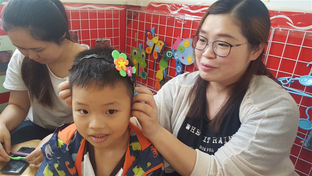 在这春意盎然的日子里,我们中一班把家长请来陪伴幼儿共同进行手作活动《创意头箍》。我们事先准备了许多的黑色头箍,没有颜色、没有花纹,却给予孩子们更多的创意空间,家长和孩子商量如何用黏土制作,制作什么,分工合作。女孩子最喜欢蝴蝶结的头箍,妈妈带着孩子一起搓泥条,再用泥块做成蝴蝶的形状,粘贴牢固,漂亮的蝴蝶结头箍就做好了。有的孩子还做起了小老师,爸爸不会做,宝贝就教爸爸,“我们一人搓一个泥球,然后搓点泥条,盘一盘,再进行装饰,我要做一个米老鼠耳朵的头箍。”在他们的巧手下一幅幅作品跃然而生。