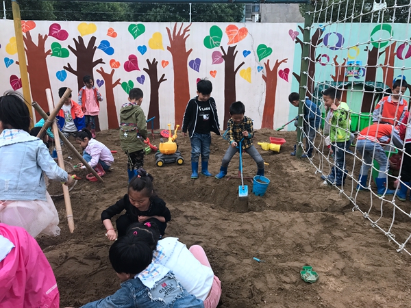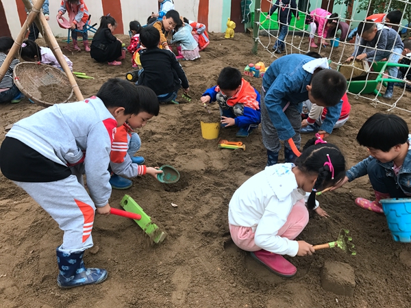 玩沙是孩子们特别喜欢的一项户外活动,他们在沙地玩耍,像在海边的沙滩上一样,自由自在,无拘无束,不同的只是伙伴多了,所以,玩沙往往是孩子们最快乐的时光。沙的流动、松软,沙的细腻、粗糙,沙的凉润与灼热,沙的轻飘与沉重,沙的可塑性与不可固性……在这方属于孩子的天地里,玩沙的孩子们有一百种感觉,一百种惊讶,一百种表达的方式。