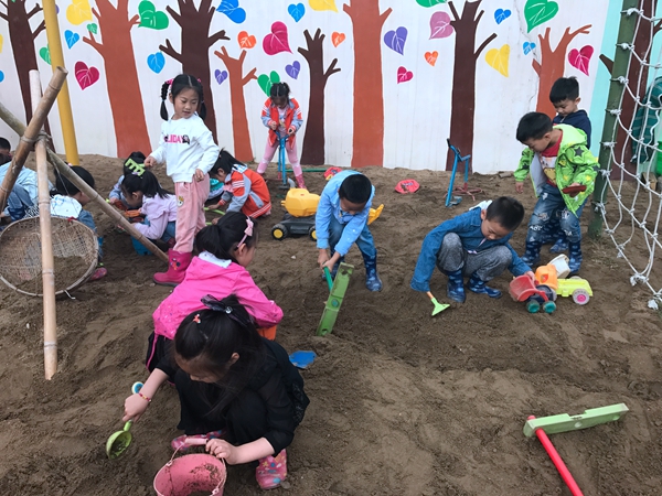 在孩子们眼里,沙子魅力无穷。因为沙是变化无穷的原始素材,它引发着孩子强烈的好奇心和求知欲,满足了孩子创造的欲望。富有创造性的环境造就创造性的孩子,每一次玩沙的过程都是孩子与老师、与材料互动的过程,是孩子们创造的过程,是孩子们自主发展的过程。