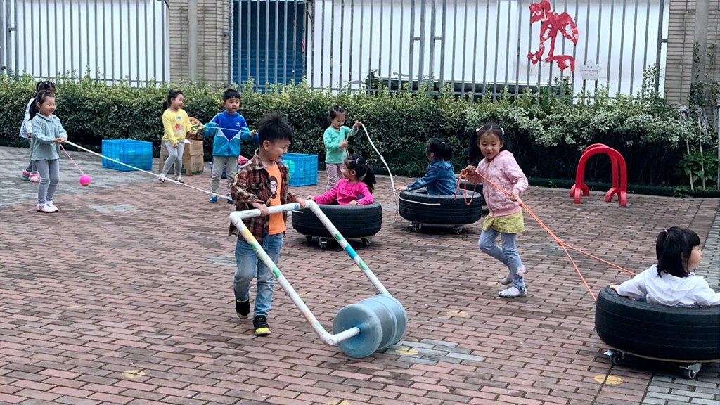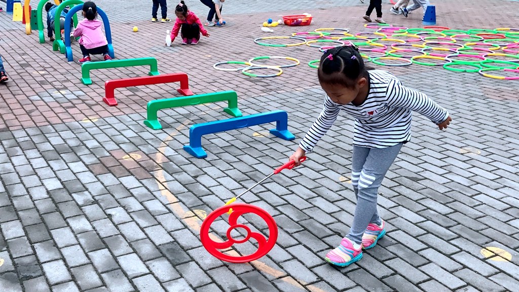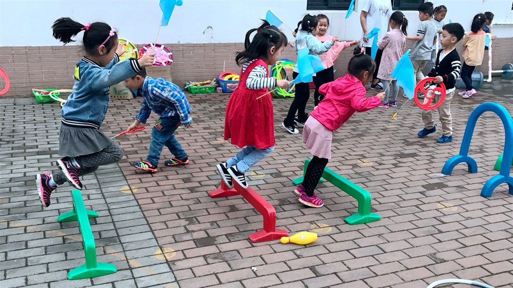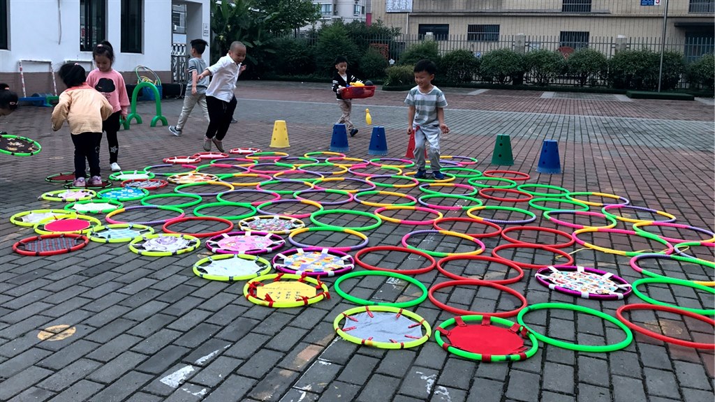 为了让孩子们玩得更有兴趣,教师们利用各种废旧报纸、饮料瓶(罐)、硬纸壳等材料,创新自制了“滚轮”、“飞盘”、“纸球”、“金箍棒”等活动器械,这些器械充满了趣味性和实用性,适合幼儿年龄特点,易于幼儿操作,有效地丰富了活动内容,提高了活动质量。活动中,幼儿自主互助、专注投入、欢呼雀跃、快乐无比,幼儿的身心、情感在活动中得到了健康、愉悦的体验。