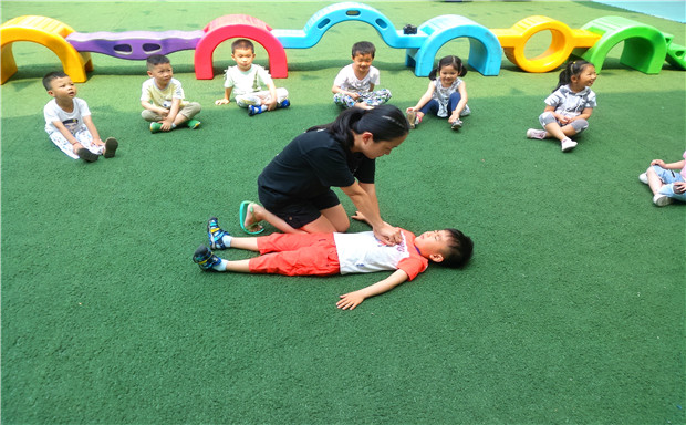 上午9点,教师通过安全平台进行了防溺水知识学习,使幼儿对溺水的原因以及如何预防溺水有了系统、全面的了解。接着拟设模拟场景,进行求救、互救、自救的防溺水实践演练示范,同时老师还在演练现场和演示对溺水人员上岸后的急救处理方法。最后,老师指导幼儿开展对溺水者实施医疗急救的模拟演练。通过活动,不但告知幼儿私自随意玩水嬉水的危险性,还让孩子们了解到基本的常识,学会基本的自护、自救方法。同时增强了师生重视安全的意识。