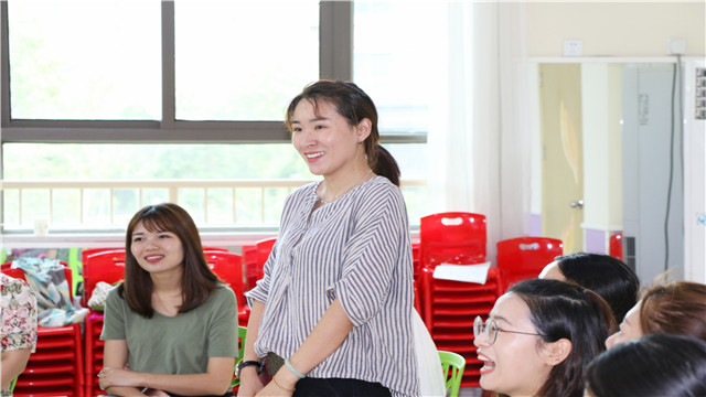 活动开始时,裔老师进行了传沙包游戏,参与者围成一个圈,由一人先扔沙包,游戏中每个人要记住扔给你沙包的人和你扔的人是谁,随着沙包数量的不断增加,刚开始每个人都显得手忙脚乱,无法集中注意力接住扔过来的沙包,但随着游戏的进行,发现只要你注意力集中在扔给你沙包的人和你扔沙包的人就能很顺畅地将游戏完成。这也就像我们的孩子,当吸引的东西太多,注意力就会分散,孩子的专注力就不易培养。