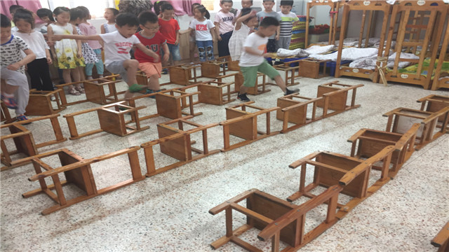 在老师抛砖引玉过后,孩子们似乎来了灵感,小脑瓜中有了许多不一样的玩法,个个摩拳擦掌,忍不住想要一试。他们有的两两一组,有的三五成群,有的则是独立创造……孩子们有的将椅子拼成跨栏式模样,有的将椅子搭成平衡木,有的将椅子摆放成跳台……在他们自己亲自尝试过后,各种各样新奇的玩法出现在了我们的眼前。孩子们都是有想法的精灵,集体的智慧果然是这么强大。这不仅仅锻炼了孩子们走、跑、跳、跨跳等动作,更重要的是让孩子们有了更大的空间去探索,去创造,去合作。在这些玩法中,有简单的也有挑战的。虽然有挑战,但在孩子们身上透露出一股奋勇向上的劲儿!在同伴互助和老师的指导下,孩子们个个信心满满,玩的不亦乐乎!