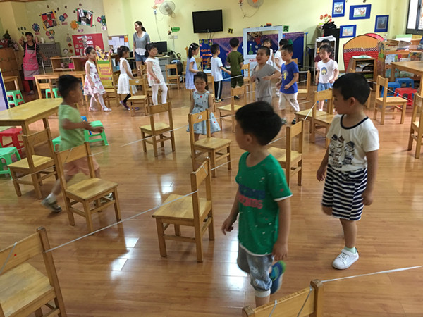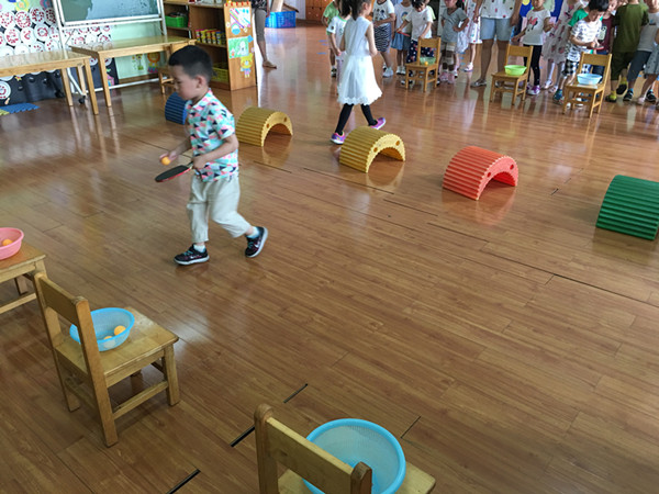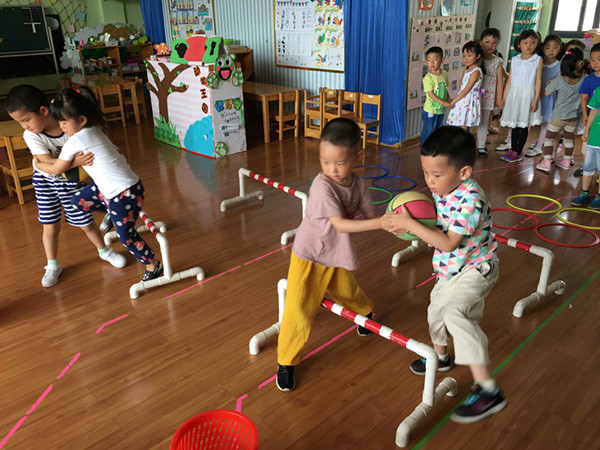 游戏时老师们充分调动幼儿的积极性,鼓励孩子以主人翁的态度参与到游戏中。让他们在与同伴和成人的交往过程中,获得有益的生活经验,不断认识自己,了解自己。如《天罗地网》《海底捞珠》等受欢迎的游戏,孩子们百玩不厌。通过感官、动作语言,周围环境互动,他们积极主动地探索,乐在其中。
