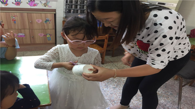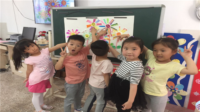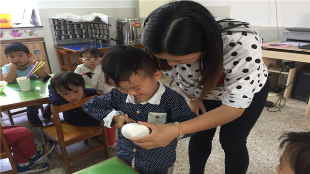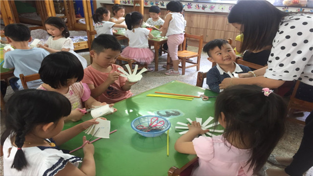 孩子们在宗明理妈妈的指导下,小心翼翼地进行制作,看着自己的作品完成了,他们相互交流欣赏,得意地指着自己作品给同伴、老师看……(张春华)