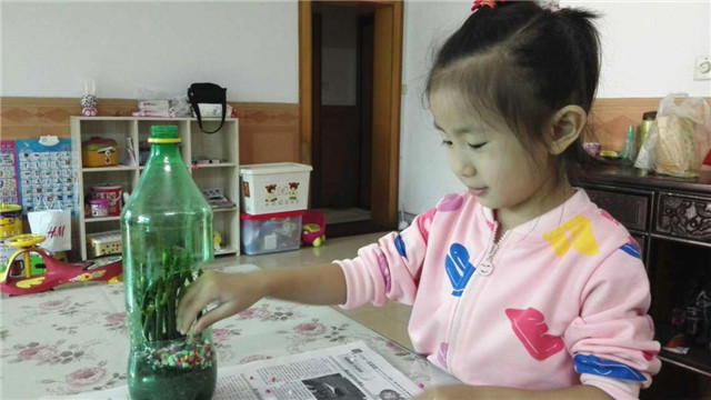 让孩子回家积极动脑动手用可乐瓶、酸奶瓶、薯片罐等进行花盆和装饰,有的利用现成的贴纸、有的利用彩纸进行剪贴。将花盆装饰的绚丽多彩,然后再自己亲手种上植物。看:我们小朋友做的花盆多么的有设计感,种上植物后,一盆漂亮的绿植盆景就呈现了。(周如)