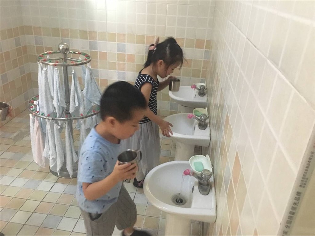 “咕噜咕噜,咕噜咕噜”这是什么声音呢?我们来找一找!原来是宝贝们在漱口呢!