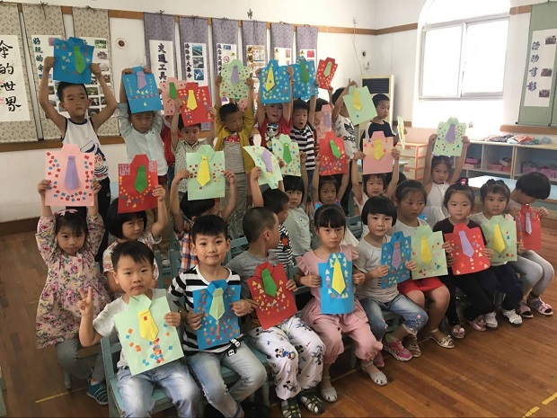 活动中,小朋友们还为爸爸们设计了七彩领带、衬衣、爱心卡片,希望爸爸每天的生活多彩多姿,相信当爸爸们看到这一份份并不华丽,也不昂贵的“礼物”时,惊喜的表情会证明这礼物是多么的珍贵而美丽。