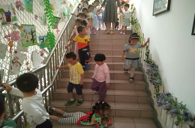 随着“警报”的响起,全园幼儿在各班老师的带领下,一个紧跟一个,有序地按预定路线撤离到安全地点。整个过程中,园长和老师的分工明确、责任到人,确保了幼儿安全撤离。整个疏散过程历时2分26秒,达到了预期的效果。本次防踩踏演练,孩子们了解了上下楼梯排队靠右走的重要性,同时也提高了孩子和老师的自救技能。