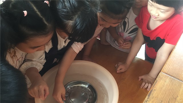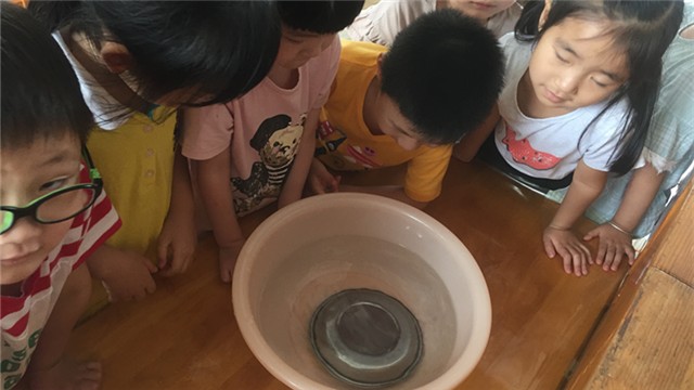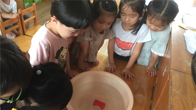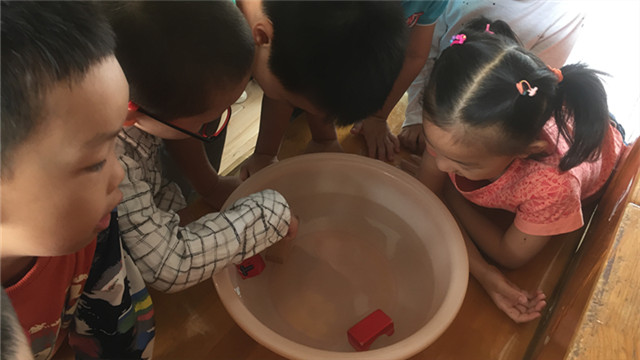 《指南》指出,4-5岁幼儿喜欢接触新事物,经常问一些与新事物有关的问题,并能对事物或现象进行观察比较,发现其相同与不同,能通过简单的调查收集信息,并用图画或其他的符号进行记录。孩子们在游戏及日常生活中,会发现一些奇怪的现象如“船为什么会浮在水上走?”“为什么有些东西回会浮在水面而有些东西沉在水里?”等等,为了满足幼儿的的好奇心,探索身边的的科学,接触沉与浮的现象,并对沉与浮的现象做出简单的分析、判断和推理,因此设计了这个科学活动,进行实验。这不,红东幼中二班的小朋友正在做实验呢。