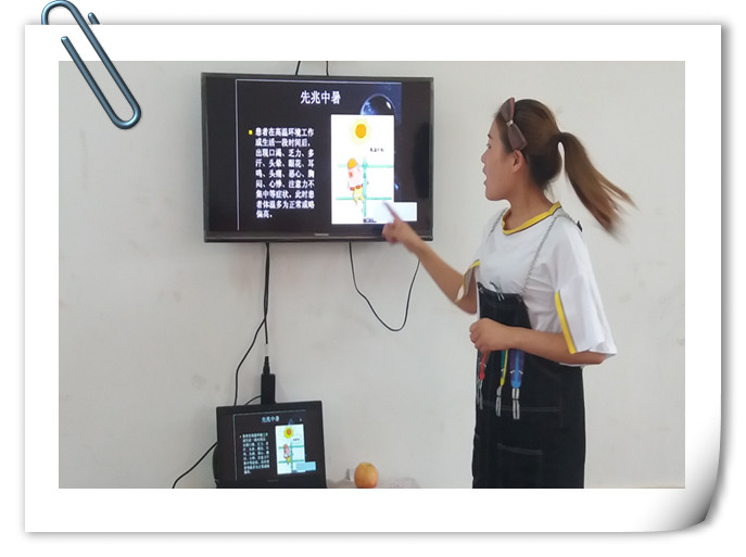 其次,幼儿园对各班进行了一次防暑降温安全教育,了解中暑的原因,如何做好防暑降温工作,如果中暑了应该怎么办,使幼儿对中暑有了一定的了解。