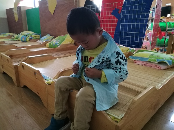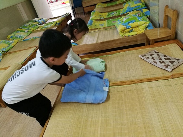 围绕“自己的事情自己做”这个宗旨,家长让孩子做点力所能及的事情:穿衣裤、浇花、拖地等;在幼儿园,老师让孩子自己穿鞋、叠毛毯、穿衣服等。家园合作,凡事从小事做起,培养孩子的自理能力,激发了幼儿的自我服务意识。