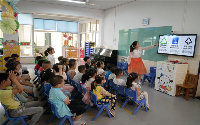 各年段老师以“垃圾分类”为主题,渗透在相关教学活动以及实践活动中,利用宣传展板、生动的课件、“巧虎教我分垃圾”等形式,生动形象地向幼儿介绍了垃圾分类的知识,提高幼儿对垃圾分类的认知,懂得了垃圾分类再利用的价值与意义,并提供了各种实物让幼儿动手操作。