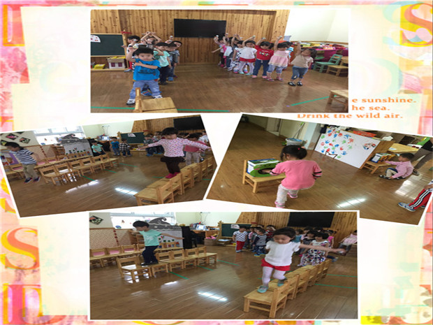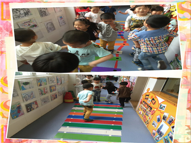 瞧!小班孩子们在教室门口的走廊里开展 “蹦蹦跳”的游戏活动。五彩的琴键,孩子们在琴键上跳着,仿佛在弹奏着一首首动人的旋律。看!中班小朋友的“喂小动物吃东西”,更是将班内的小椅子也利用了起来,孩子们自信满满地走在上面,不但锻炼了孩子们的平衡能力更让孩子鼓起勇气,克服了心里的恐惧。听!大班幼儿在教室中开展了“翻滚吧,朋友”的游戏活动。“好朋友手拉手,我们一起向前走,好朋友手拉手,咕噜咕噜翻筋斗。”在儿歌声中,教室里充满着欢声笑语。