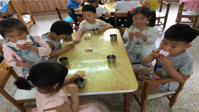 经过烤箱的烘培,热腾腾、香喷喷的蛋糕新鲜出炉了。小朋友们开心地品尝着自己的劳动成果,快乐的音符在空间流淌。(周如)