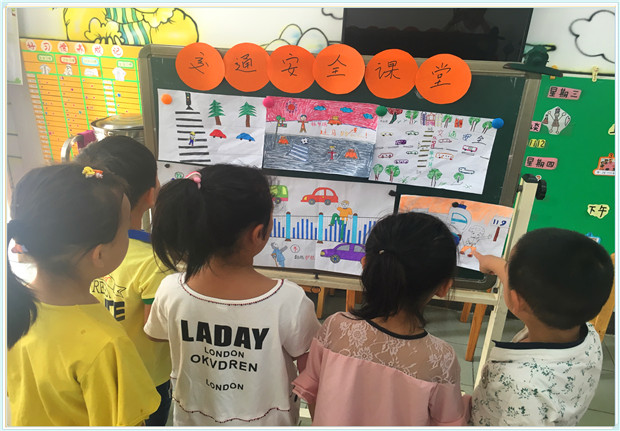 活动中,为了向我们的小朋友和家长宣传了交通安全的重要性,利用幼儿绘画的美术作品、观看相关的视频、家长之窗的方式。如在欣赏自己画出的“交通安全出行”的绘画作品时,在小朋友们幼小心灵里播下了“文明出行”的种子;通过观看充满童趣的安全动画短片时,学认交通安全标志,给孩子们普及日常交通安全知识,提高了孩子们的交通安全意识;在家长之窗中投放交通安全知识的资料,让家长们对交通安全给予重视!
