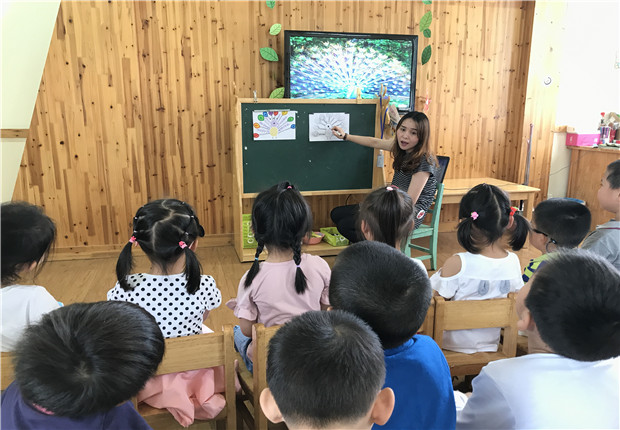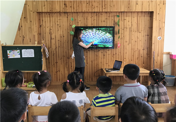 小班老师根据小班幼儿画画能力的发展情况,设计了一节美术活动——《孔雀真美丽》。活动前,老师先带领幼儿观看了孔雀的视频和图片,结合幼儿平常的经验,让幼儿仔细观察了孔雀的外貌特征,羽毛的形状颜色。幼儿们观察得很仔细,他们说出了羽毛的形状,而且还发现了每只孔雀的羽毛颜色还都不一样。