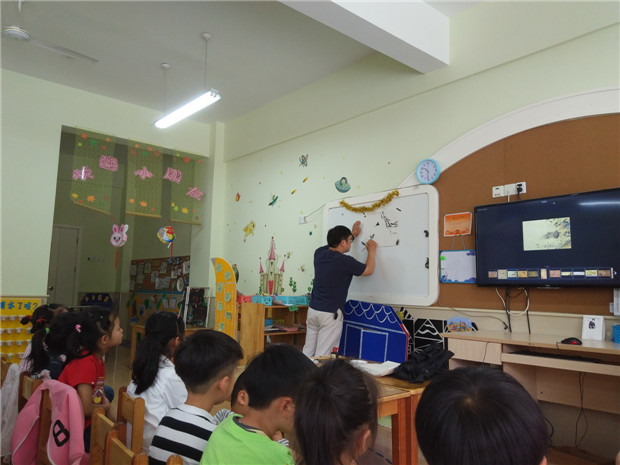 这次来到我们班的是一位画家爸爸,而且特别擅长水墨画。水墨画是中华民族的文化瑰宝,为弘扬中华水墨画传统技法,了解中华书画的内涵与意境,培养小朋友对中华书画文化的兴趣,我们开展了此次活动。 平时小朋友都是以油画棒画画,尝试一些新奇的材料与作画技法都让孩子们乐此不疲。和画家爸爸一起画画,孩子们也体验博大精深的水墨画,在创作的过程中既能体验其中的乐趣,又能感受成功的喜悦,可以很好地提高幼儿的手眼协调能力和对美的欣赏能力。
