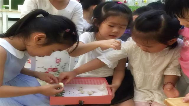 一天天,在小朋友们的精心呵护和照顾下,蚕宝宝变长、变粗了,善于观察的小朋友们在蚕宝宝的“家”里发现了很多黑色的小粒,“老师,这是什么?”有小朋友问道,“你们猜猜看!自己去观察,看能不能找到答案。”说着小朋友们围在装有蚕宝宝的盒子旁边,仔细地观察起来!不一会儿,小朋友们激动地叫了起来:“老师你快看!蚕宝宝大便了,拉出的就是黑色的小粒。”原来,这些黑黑的、一粒一粒的是蚕宝宝的大便,老师告诉小朋友们这些黑的也叫蚕砂,这可是好东西,用蚕砂做成的枕头有利于睡眠,还能明目呢!我们的蚕宝宝可浑身都是宝呢。