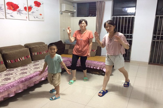 孩子们兴致很高的将老鹰捉小鸡、丢手绢、木头人、炒黄豆等游戏一一教给自己的爸爸妈妈,在家里幼儿玩出了创意,玩出了亮点,他们尽情的享受着游戏带来的快乐,体验着彼此的信任。家长在家和孩子玩游戏,重温童年的快乐,密切与幼儿的亲子关系。你看,他们有的加入了爷爷奶奶,一起玩老鹰抓小鸡;有的站在沙发上和妈妈玩起了炒黄豆;还有的在客厅玩起了木头人的游戏,看看爸爸妈妈和孩子的脸上笑得多开心啊。