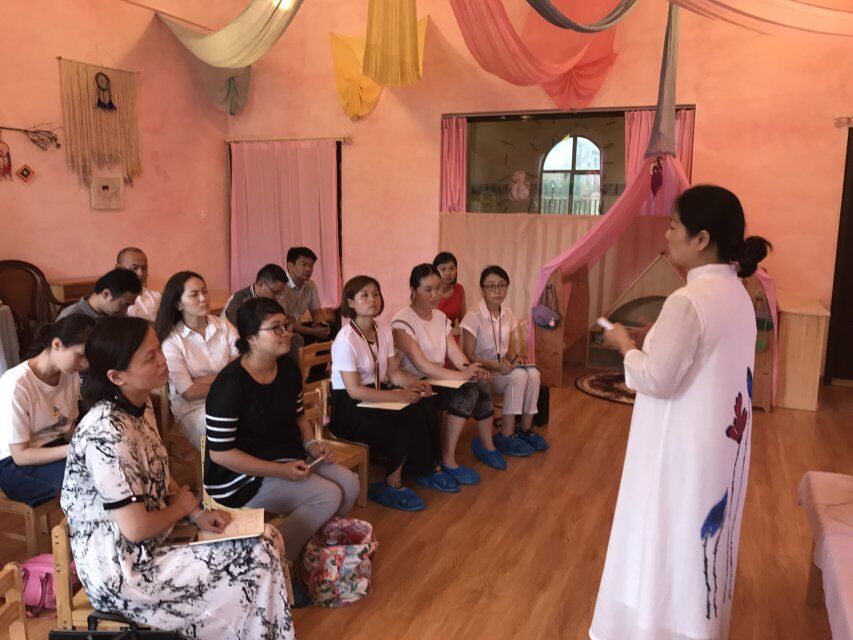 随后陈园长带着成员们了解幼儿园的建立过程和华德福教育的人智学理念,幼儿园一日生活作息时间是按照动静结合原则,根据孩子们一呼一吸的节奏特点安排不同活动。在华德福一日活动中是以自由游戏时间为主,这也是工作室成员此次需要学习的地方。