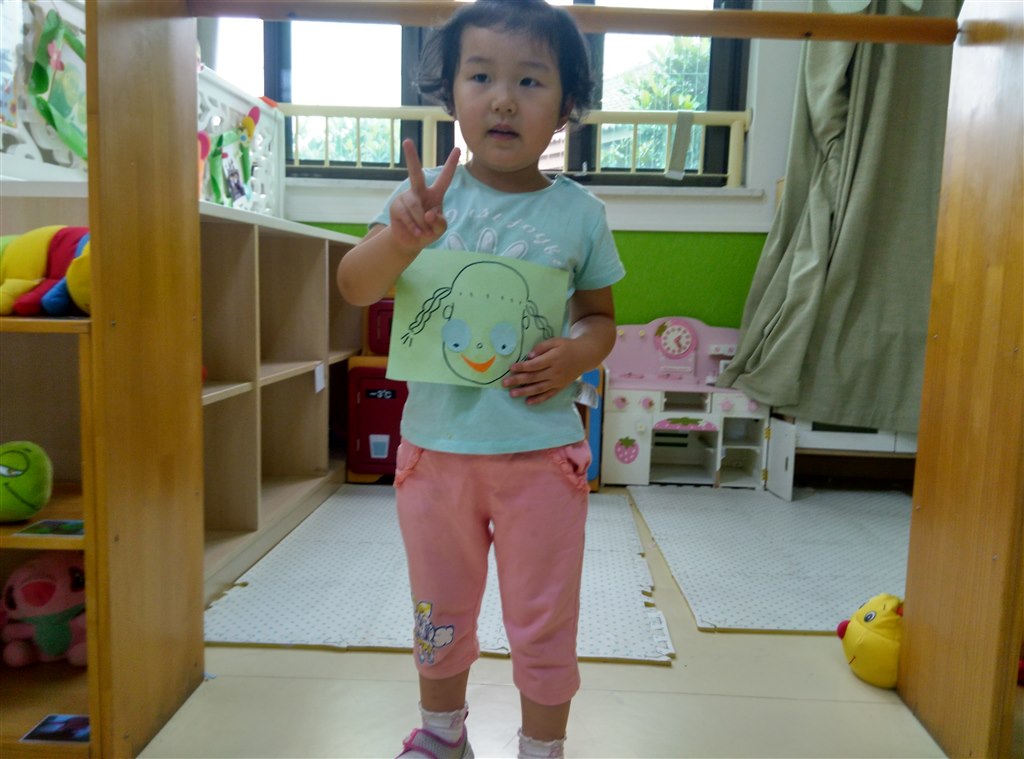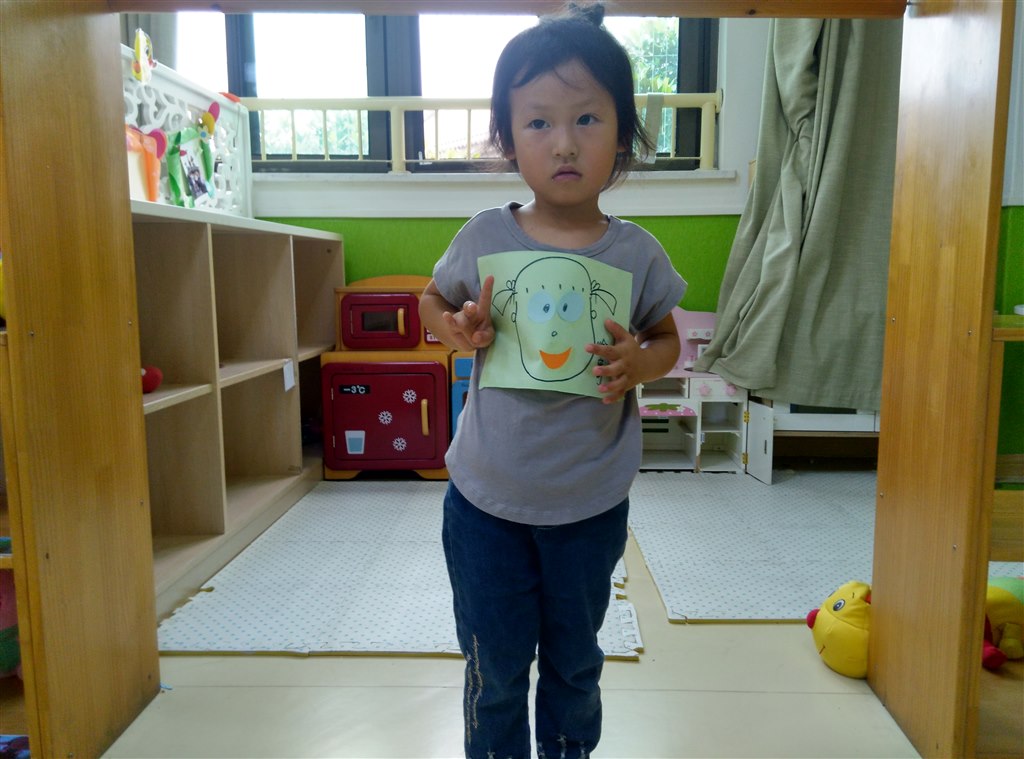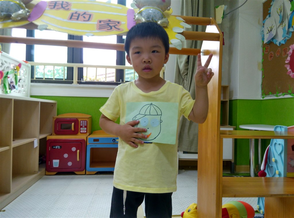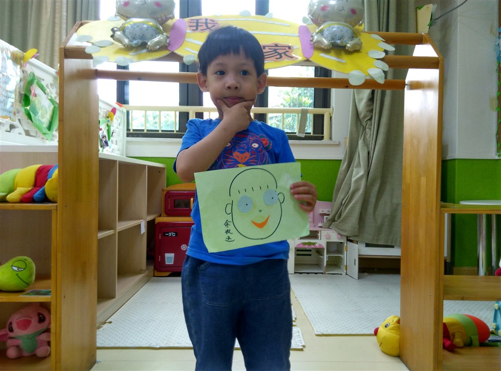 第三个活动环节——展示五官。小朋友拿着自己的作品脸上乐开了花。(撰稿:张轶男)