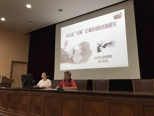 2017年3月,红东幼申报了新的课题《乐陶区域活动的实践研究》,同时也被评为中国教育学会“十三五”规划重点课题子课题《陶艺课程的育人价值及其区域推进的实践研究》实验学校,申报的课题被批准为实验学校研究课题。并于2017年6月下旬参加在上海市普陀区教育学院召开课题开题会,红东幼课题项目负责的老师根据学校研究课题内容,作了5分钟的开题汇报。