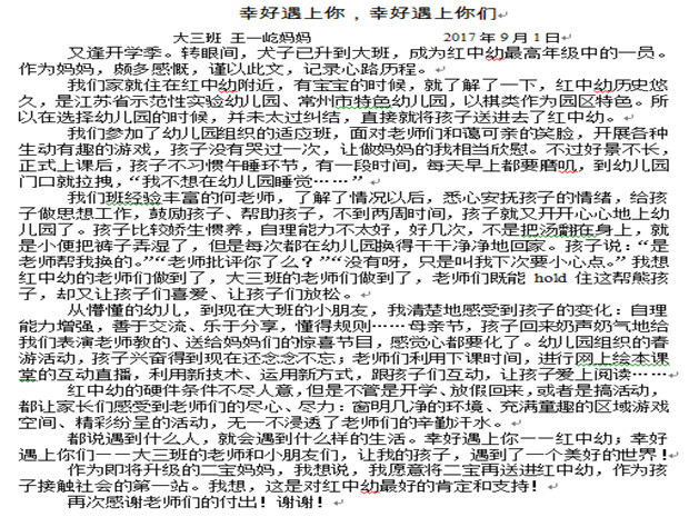 红中幼:感动于一封家长的来信