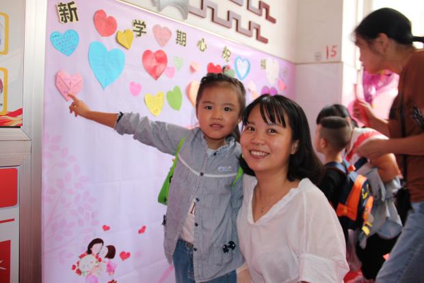 九月一号一大早,全体教职工就朝气蓬勃、笑容满面提前等候在教室门口,热情迎接来园的幼儿和家长。家长们个个喜笑颜开,把欢天喜地的孩子们陆续送入新园,孩子们立刻被富有童真、童趣的环境所吸引,兴奋地欢呼着“幼儿园真好,幼儿园真漂亮!”、“看,外面还有一个小喷泉!”……灿烂的笑容洋溢在孩子的脸上,家长们也对新园表示非常满意和放心,纷纷举起相机记录下孩子们幸福的瞬间,并与孩子共同在许愿墙上写下了对孩子、对老师、对幼儿园的美好祝福和期许,各班老师热情招呼并拥抱每一个幼儿,带领他们投入到新园的第一天生活中。