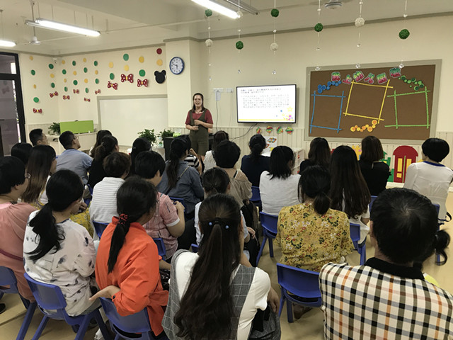 本次家长会共分两个议程。第一环节“爱的教育”,缪园长首先介绍了幼儿园的概况、办园特色以及办园宗旨,然后立足爱的呵护,爱的放手,让家长们对新生饮食、安全、保健及新生焦虑问题的解决有了基本的了解;接着教学负责人卢老师以“爱”为题,对幼儿园的爱的团队、爱的教育理念做了介绍,并跟家长分享了一些教育上的问题和非常实用的教育方法,对于我园的课程及需家长配合方面做了详细的介绍。