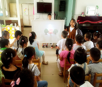 本着“使废旧重新利用”的原则,老师们各出奇招,将个人智慧融入一件件精美的作品中。此次茶山中心幼儿园选送的材料为——炫动皮影戏,在皮影戏内容选取上具有以下几特点:材料选自平时常用的塑封膜,运用构图、上色、打洞、连接、插入三根小棒,运用手电就可以在幕布上进行操作;一物多玩,提供树、山、河流、小动物等背景材料多次利用,体现有效性;区域中,幼儿绘制喜爱的角色,将皮影戏学以致用,提高动作能力及想象力;除了提供经典民间故事外,孩子们可以自主选其中角色自由组合创编,语言能力得到提升;皮影戏需要多人操作,利用光影有效配合,同时还需提供音乐、解说等不同环节的填充,在幼儿相互互动中,合作能力有效提高。