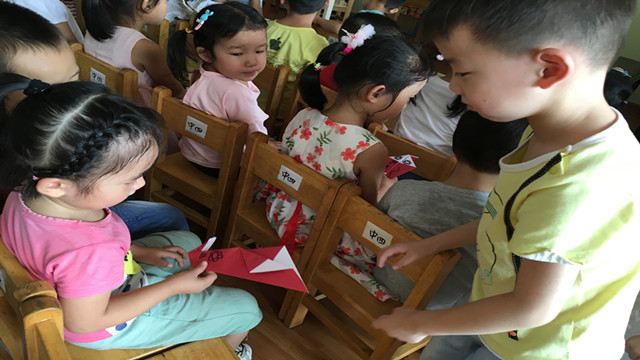 活动前,小朋友们认认真真的做着自己的礼物,有的小朋友还问老师:“弟弟妹妹会喜欢我做的礼物吗?”不一会儿,他们各自拿着自己的作品,满怀喜悦之情把它们送到了小班弟弟妹妹们手中,还对他们说:“在幼儿园很开心,你们不要别哭啦,我们来带你们一起玩。”短短的时间里,孩子们就建立起来深厚的友谊,大家手拉手,一起唱歌、做游戏,小班孩子从刚开始的哭哭啼啼变成了一个个快乐的小天使。
