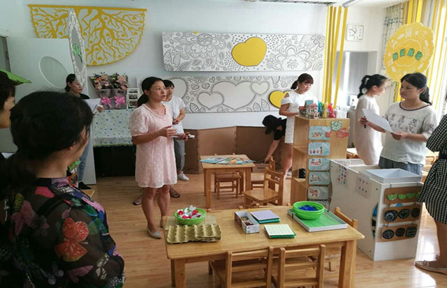 为了提高教师专业化成长,发挥幼儿园环境育人作用,拓宽教师对区域活动和教室环境创设的理念,2017年9月8日中午,茶山中心幼儿园教师在组长的带领下,参观新世纪幼儿园的环境。
