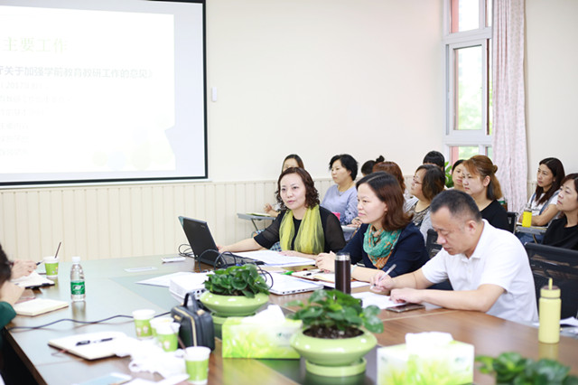 会议由教育科陈青副科长主持。首先陈科带领园长回顾我区幼儿园上半年的各项工作所取得的成绩及存在的一些问题,并布置了本学期学前教育的发展思路、工作重点和各月的工作安排。要求园长逐渐从事务型转向专业型,转变工作思路,创新工作方式,带领团队扎实项目实践,提升幼儿园的内涵和质量。接着幼儿教育研究中心施主任就本学期幼儿园的环境创设、新教材、教研工作、教师专业化成长等方面提出了方向和具体要求。最后由陶局从幼儿园的保育保健、队伍建设、文化建设、创新管理等方面作重要指示。陶局鼓励各位园长管理上要有新突破,要抛弃墨守成规的旧思想,并给出了一些具体可行性意见,为各位园长在幼儿园管理上打开了新的思路。