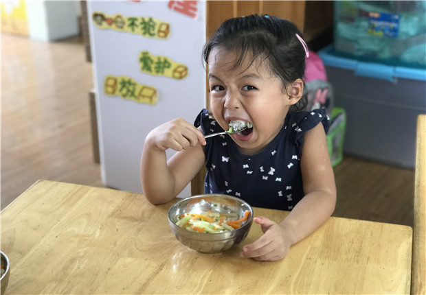 早晨,在老师们热情地接待下宝宝们也会礼貌的问好了,户外活动时在老师的带领下宝贝们也能够排着整齐的队伍,积极的参与到游戏中去了。午餐、午睡时大部分宝贝也能安心的吃饭休息了。