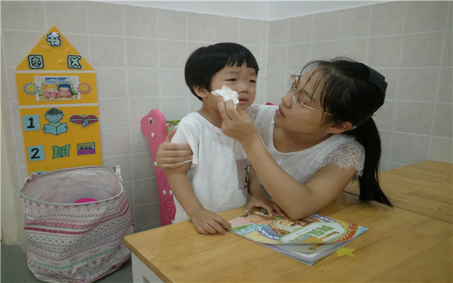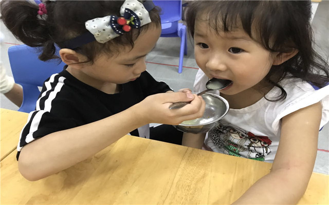 从孩子的心理特点分析,他们渴望与稍大一些的孩子交流、亲近。对于新入园的孩子,让他们先和哥哥姐姐一起玩,相互介绍,彼此熟悉,产生感情。这样,他们就不再感到孤单、陌生。于是我园开展大带小活动,大班小朋友带着小班小朋友一起玩游戏,讲故事……这种体验,给予了小班孩子享受帮助与关爱的机会,从而也缓解了他们入园焦虑。