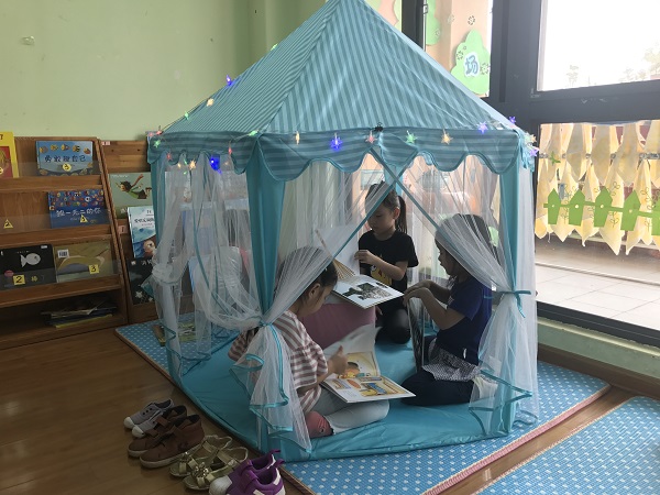 在教师和孩子们的共同设计下,温馨有趣的图书区就这样一一呈现。阅读区的丰富也为孩子们对阅读培养了兴趣,让他们爱上了阅读。