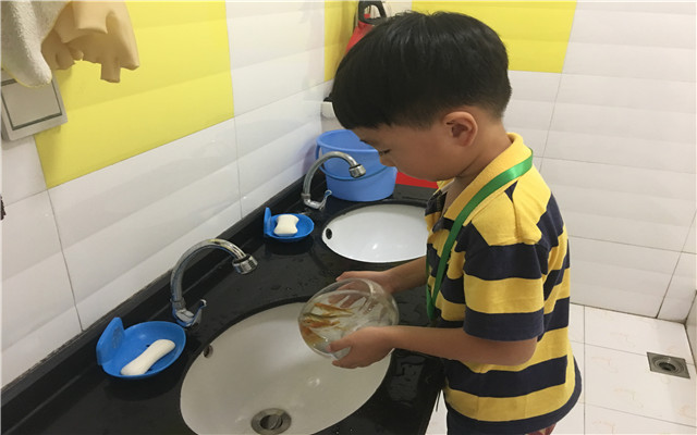 老师向孩子们介绍这些新朋友,引导孩子们仔细观察,使他们有初步的了解。采用视屏、图片的形式,介绍仓鼠、乌龟、金鱼的生活习性和饲养方法。孩子们轮流做值日生,照顾这些新朋友。瞧,值日生们一早来到班级后,他们有的给金鱼换水,有的给仓鼠喂食,还有的给乌龟晒太阳。