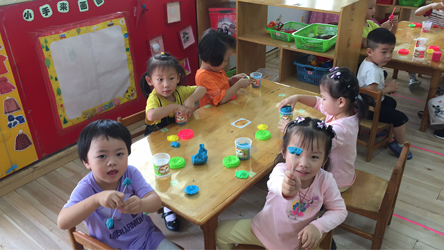 新小班还在适应过度的阶段,色彩丰富的软陶能够一下子吸引住孩子们的注意力,让他们少一些分离的焦虑,也能让他们更快地适应幼儿园的生活。(cxz)