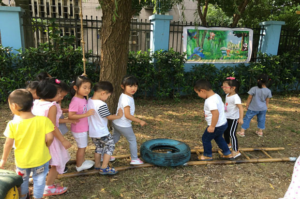 到了在野战区我们的孩子玩的兴趣很高,一会东边看看,一会西边忙忙,一会去爬梯子一会去走大桥、一会儿去当搬运工一会合作进行“搬家”真是玩的不亦乐乎啊!在玩的过程中我们的孩子也不知不觉的学会了“钻、爬、跳、跨等技能”真正的在玩中发展了幼儿的身体技能。幼儿参加完户外体育活动精神焕发,情绪愉快。(龚银霞、曹婷)