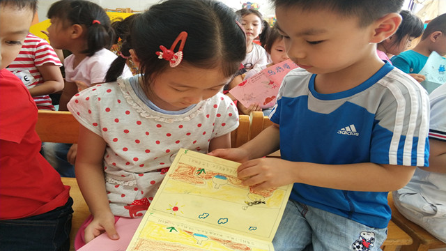 为了让幼儿在阅读中学会合作、学会交流、学会分享,在与同伴的互动交流中获得自信和快乐,近日,新城逸境幼儿园大班组开展了“自制小图书互动你我他”的活动。