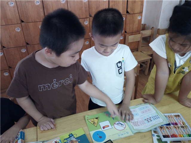 在教育教学活动中教师带领孩子认识生活中的各项安全标志,了解这些标记所包含的实际意义;同时,还引导绘制制作生活中的各种标记,融入环境布置来加强对安全标记的认识,培养一定的安全意识。