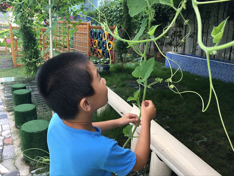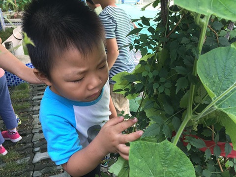 本学期,大班的孩子变成了弟弟妹妹心目中的哥哥姐姐们,他们不仅能说会道、善于观察而且会把奇思妙想照进现实!愉快的假期过后,他们惊喜的发现小菜园有了很大的变化,正是有了门卫管理爷爷的悉心照料,小菜园的植物茁壮成长。