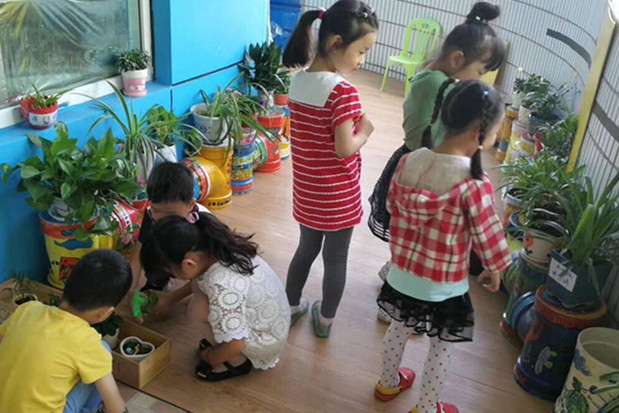 在环境的创设中,老师们充分利用了身边的农村资源,创设出别具一格的自然角景色。在自然角中,除了植物土培、水养以外还饲养了可爱的动物。不仅可以看到各种观赏性植物,而且还可以发现各种种子发芽以及幼儿的种植记录。与此同时,幼儿和家长也共同参与自然角的布置,他们利用假期共同栽种了大蒜、小麦等植物,让快乐的亲子时光也在种植中体现出来。